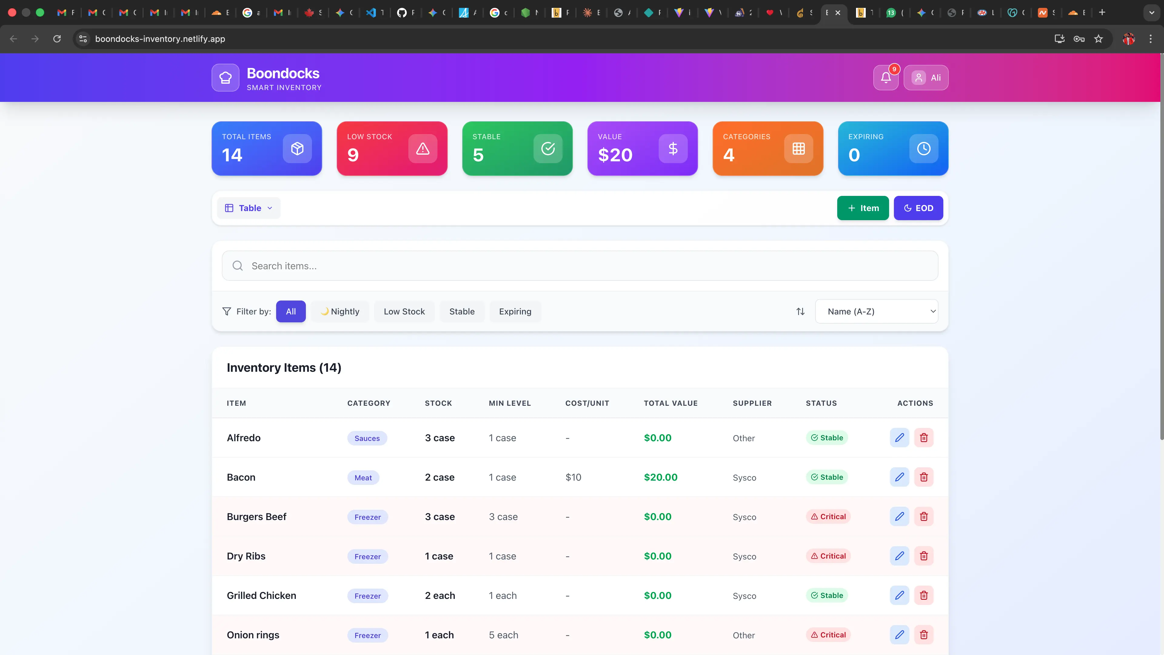 2025Internal management system to track stock levels and optimize ordering workflows.